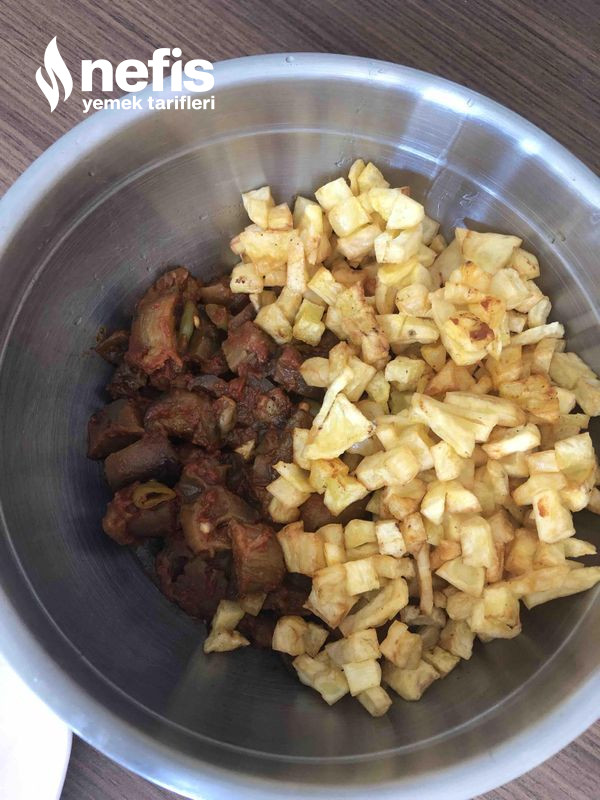 - 1 su bardağı küp doğranmış kavrulmuş patlıcan