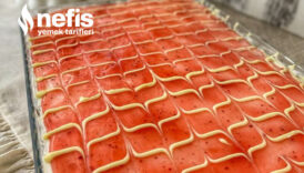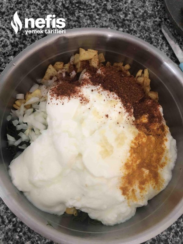 - Üzerine sarımsaklı baharatlı yoğurdumuzu hazırlayıp, ekliyoruz bu evrede isteğe bağlı olarak mayonezde kullanabilirsiniz hepsini karıştırıyoruz.