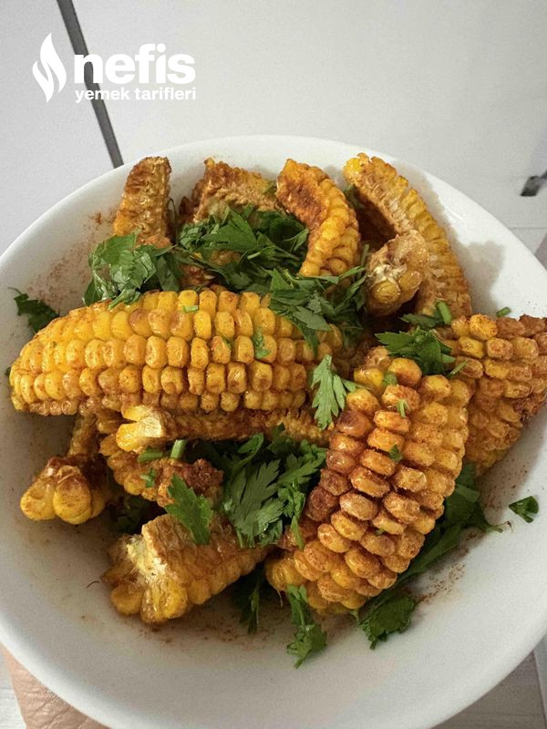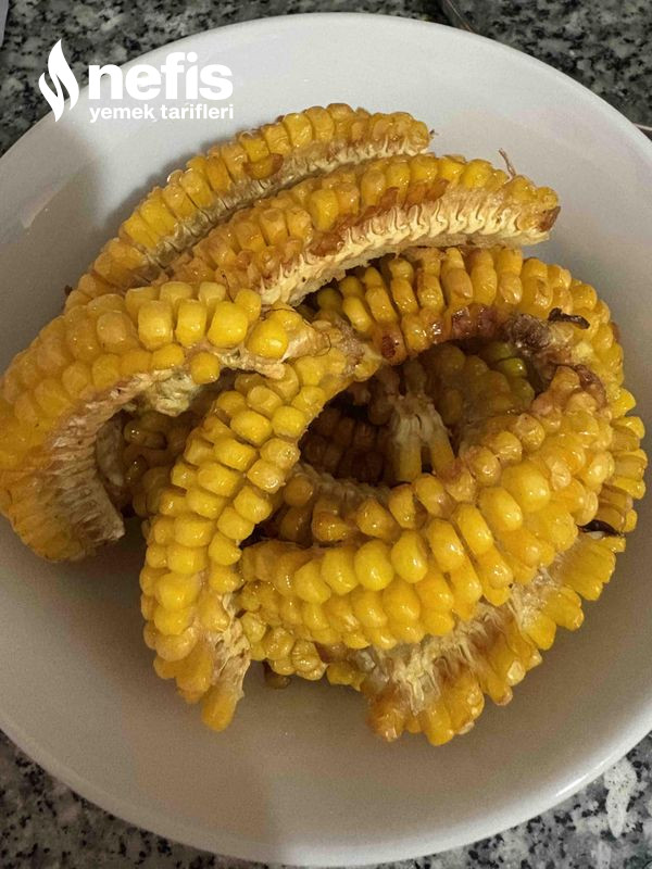 3. Peçete serdiğimiz bir tabağa kızarttığımız mısırları alıyoruz.