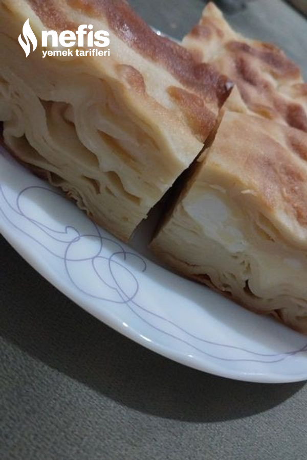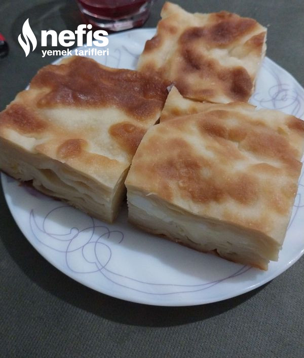 - En üstte olacak yufkayı su da bekletmeden tepsiye koyuyoruz. Tepsiyi ocakta en büyük göz ve başka orta gözü kısık ateşte olacak biçimde tepsiyi çevire çevire pişiriyoruz.