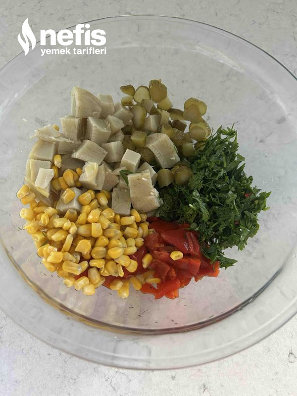 - Maydanoz ve dereotunu ince ince doğrayalım, hepsini derin bir kaseye alalım ,konserve mısırıda ekleyelim.