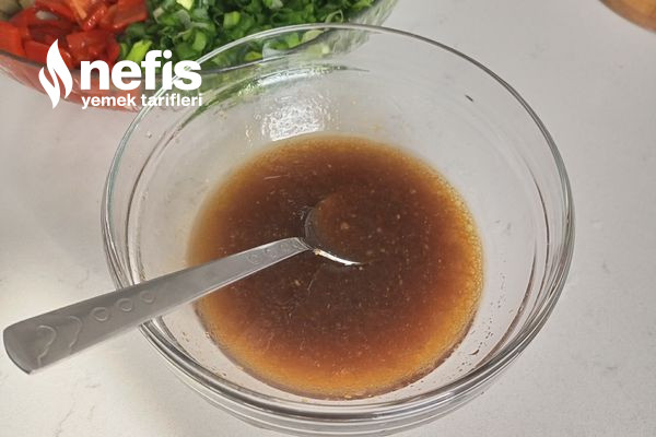 4. Üzerine zeytinyağı limon nar ekşi ve tuz ile hazırladığımız sosu ek edip güzelce karıştıralım, servis edelim deneyeceklere kolay gelsin afiyet olsun.