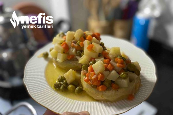 - Üzerine patates, havucu ekleyelim. Haşladığımız bezelyeyi de ek ederek 1-2 dakika karıştıralım ve ocaktan alalım.