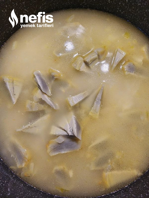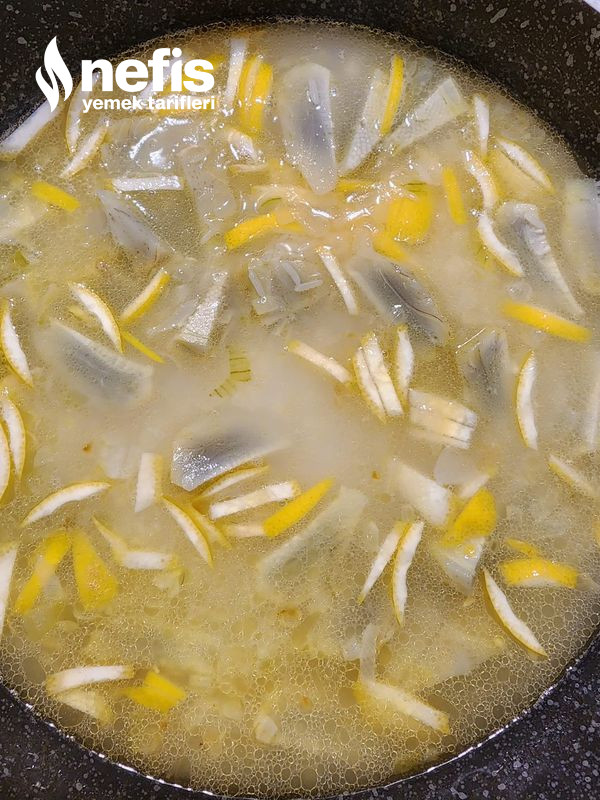 - 10 dakika sıcak suda haşlanan enginarlar dilimlenir ve soğanlarin üzerine eklenir.