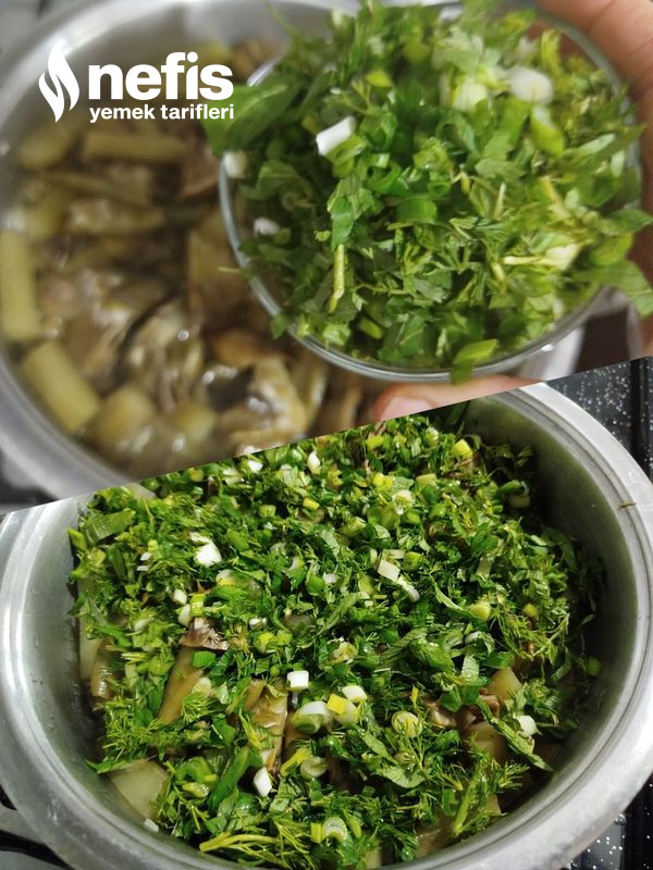 4. Piştikten sonra yeşilliklerimizi koyalım ocağı kapatalım.