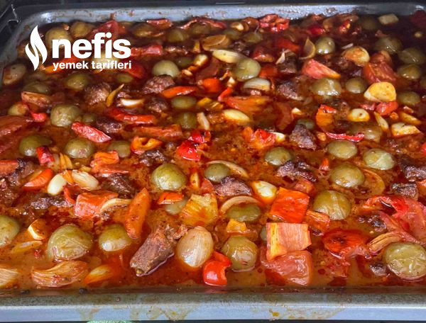 - Önce baharatları ve salçayı fırın tepsimize ekiliyoruz sonra biraz su ve zeytin yağımızı ekliyoruz karıştırıyoruz.