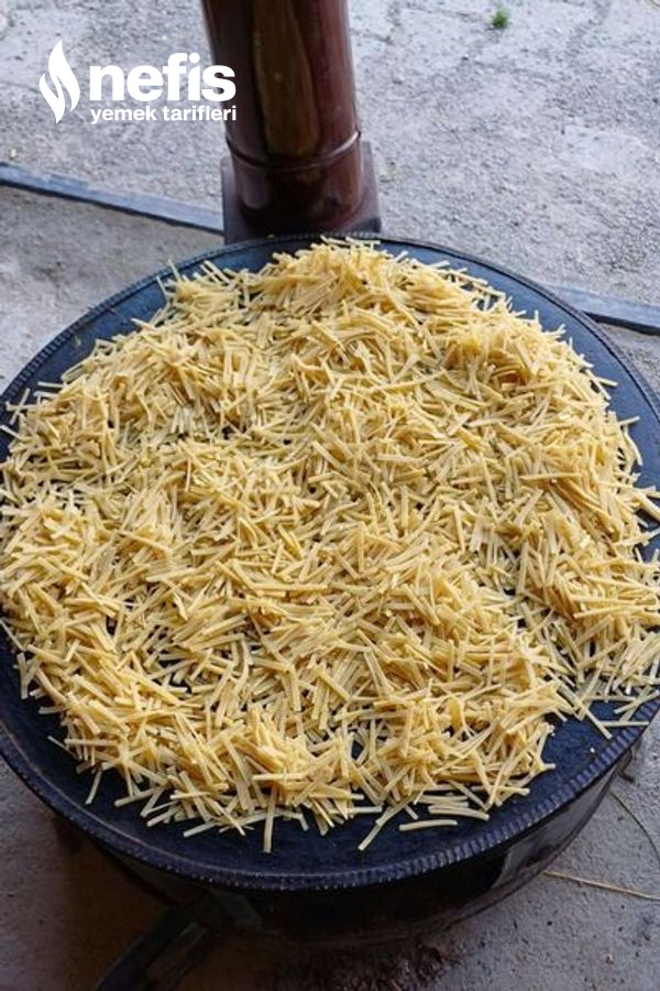 - Kesilen erişteler ateşte karıştırılarak biraz kızarana dek bekletilir.