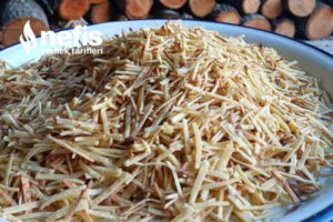 - Kesilen erişteler ateşte karıştırılarak biraz kızarana dek bekletilir.