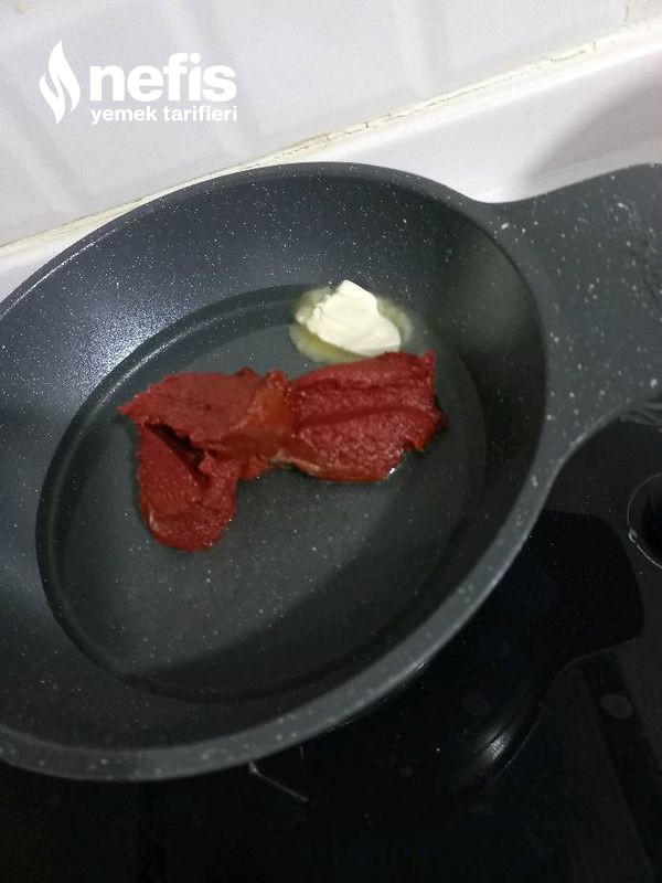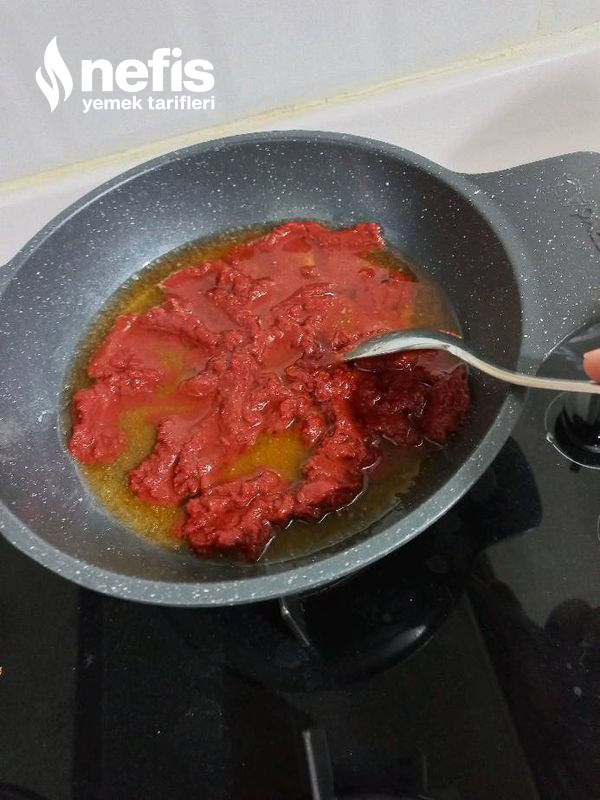 - Tavamıza yağlarımızı koyalım üzerine 2 yemek kaşığı salçamızı ekleyelim (ekleyip yada azaltabilirsiniz)