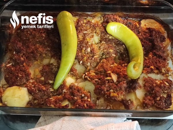 4. Daha sonra harcı elimizi ıslatarak patateslerin üzerine yaydıralım.