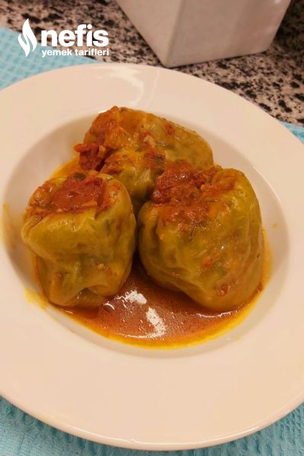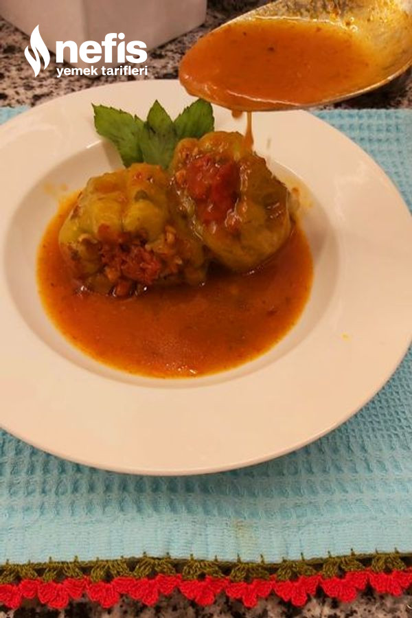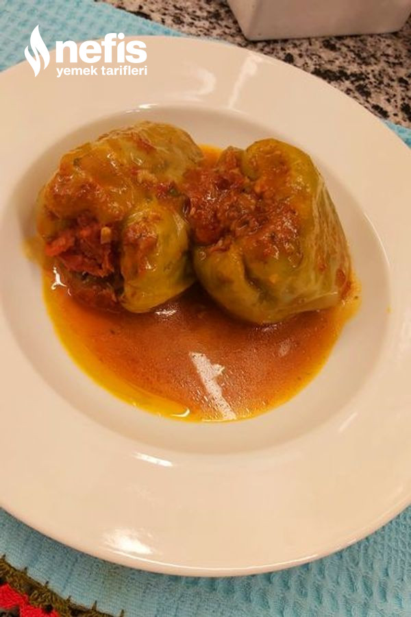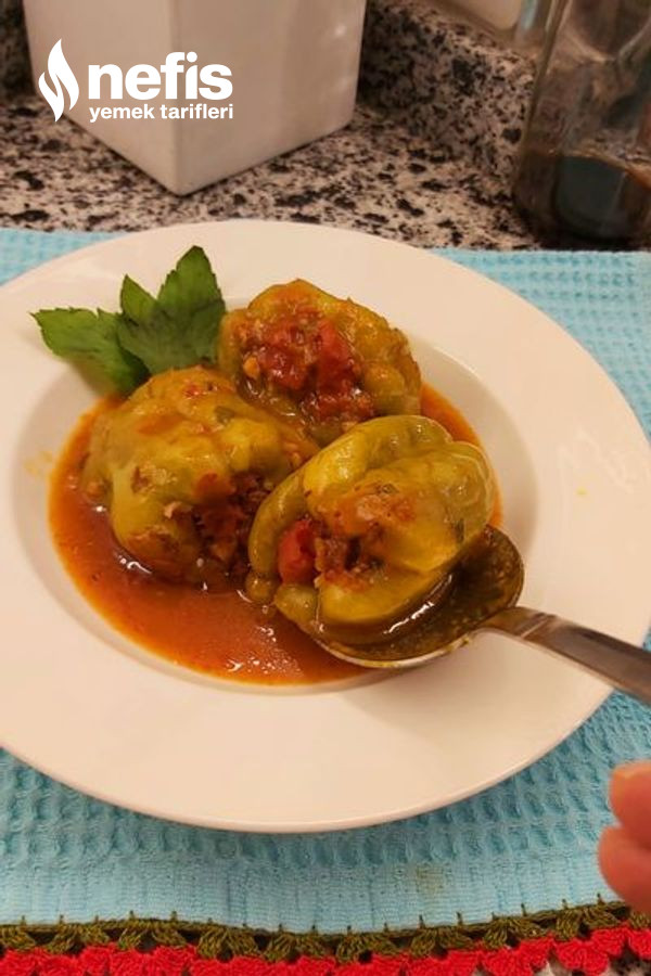 - Yukarıda gereç listesine yazdığım malzemeyi elimizle güzelce karıştırıp hazırladığımız iç ile biberleri doldurup bir kesim domates ile dolmanın ağzını kapatalım,tencereye dizelim.