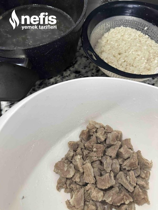 - Tuzunu ve et suyunu ekliyoruz su pilavın üstünü geçecek kadar olacak göz kararı ayarlayalım.