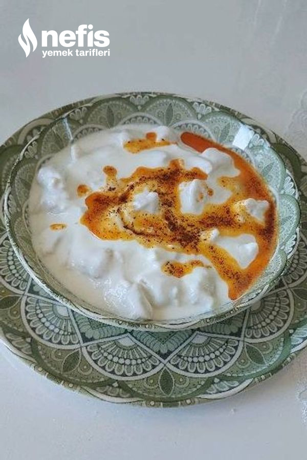- Tencereden tabaklara servis yapıp üzerine sarımsaklı yoğurdu dökelim. Son olarak kızdırdığımız tereyağı ve toz biberi döküp servis edeli.