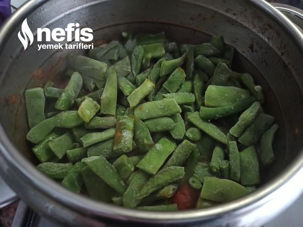3. Ardından taze fasülyeleri ekleyin. (ben buzluktakinden koydum. Siz aldığınız üzere de yapabilirsiniz).