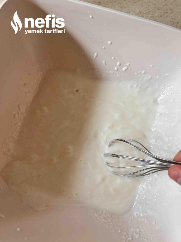 - Soğuk suyu azar azar yoğurda ekleyin ve pürüzsüz bir kıvam alana kadar çırpın.