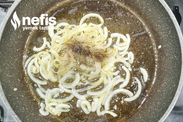 - Yağı tavaya alıp en küçük kısımda ısıttıktan sonra soğanı ekleyerek kısık ateşte 10 dakika suyunu salıp çekene kadar kavuruyoruz.