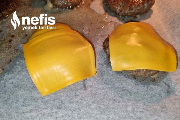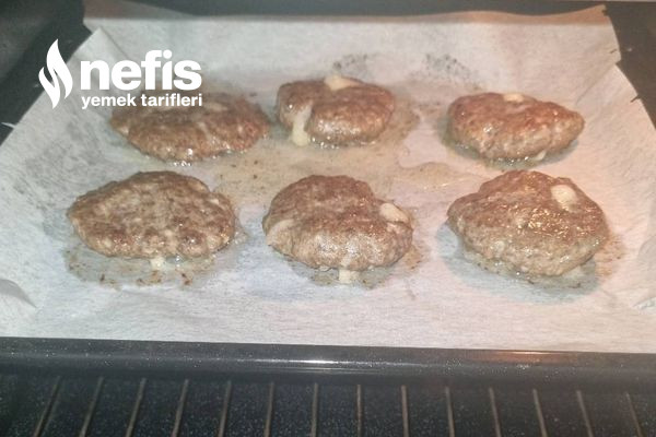 - Daha evvelce ısıtılan 180 derece fırına köftelerimizi ekleyerek 10 dakika sonra çevirip sonraki 10 dakikanın sonunda cheddar peynirlerimizi köftelerin üstüne ekliyoruz ve 2 dakika daha fırında bırakıyoruz.