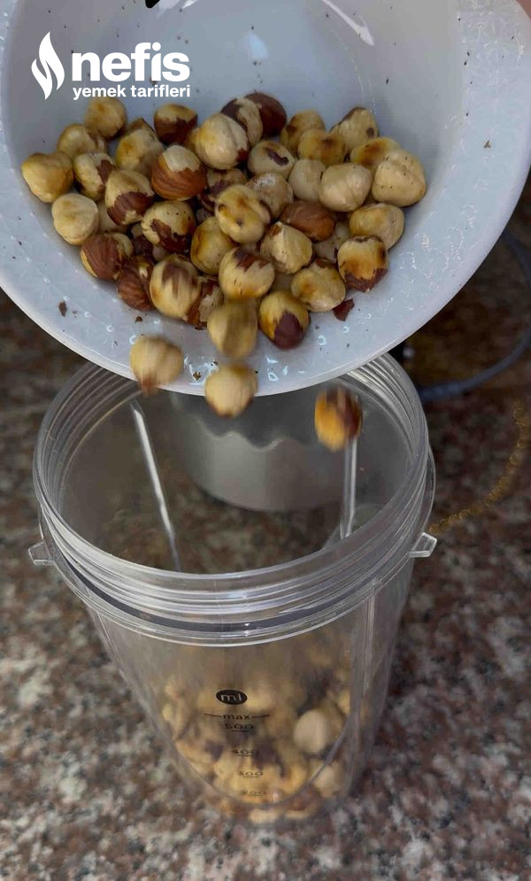 - Kabuksuz fındıkları rondoya alın, üzerine sütü ekleyip macun kıvamına gelene kadar rondolayın.