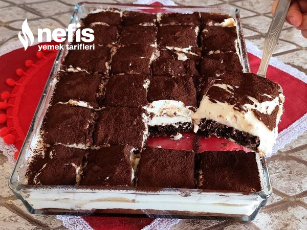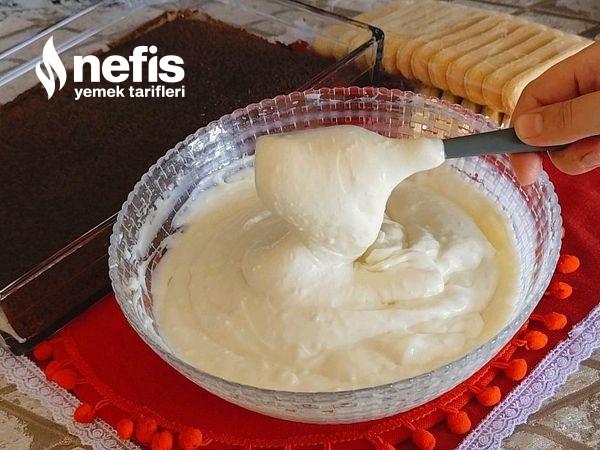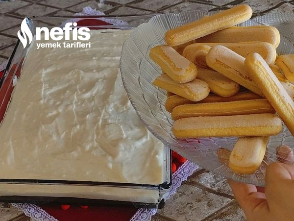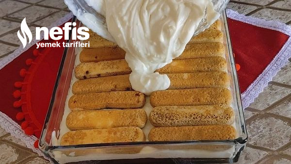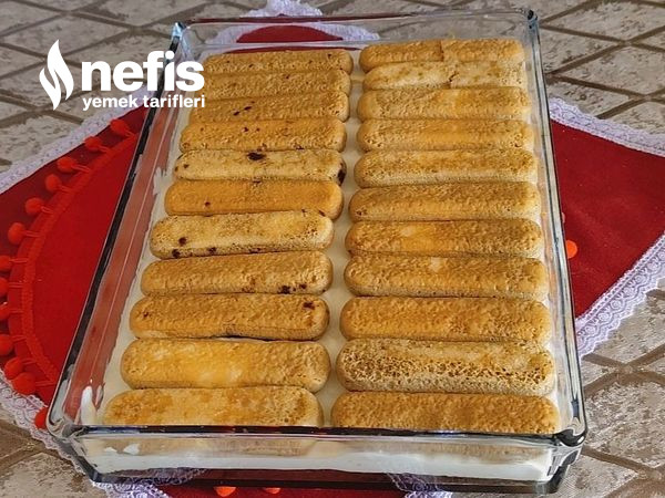 - Kedi lisanı bisküviyi kalan sosa batırıp kremanın üzerine dizelim kalan kremayı da dökelim spatula ile düzeltelim hazır olan tiramisuyu buzdolabında bir gece dinlendirelim.