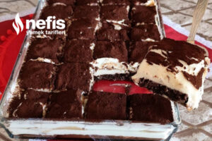 - Kedi lisanı bisküviyi kalan sosa batırıp kremanın üzerine dizelim kalan kremayı da dökelim spatula ile düzeltelim hazır olan tiramisuyu buzdolabında bir gece dinlendirelim.