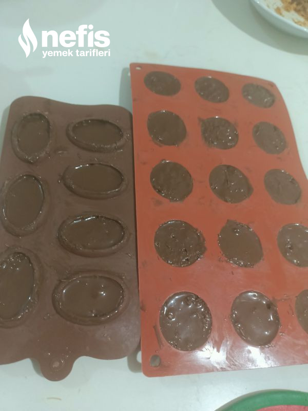 - Üzerlerine tekrar fırçayla çikolatayla her tarafını kaplayacak formda sürelim kalıpları birkaç kez yere vuralım. Yeterlice her tarafı birebir biçimde çikolatayla kaplanması için tekrar dolaba koyalım yeterlice donunca üzerlerini tekrar eritilmiş çikolata ile süsleyelim servis yapalım afiyet sıhhat olsun.