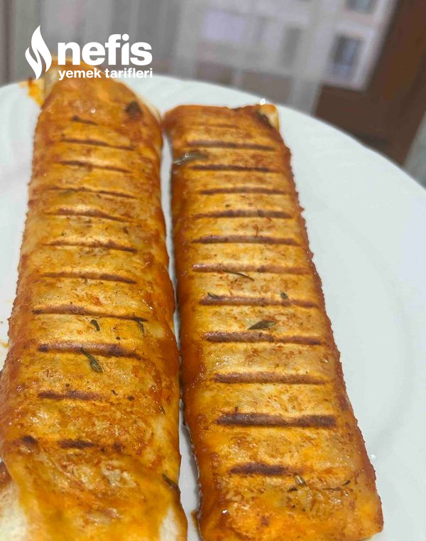 5. Sardığımız lavaşların üzerine de 1-2 kaşık kadar sos gezdirip tost makinesine alabiliriz