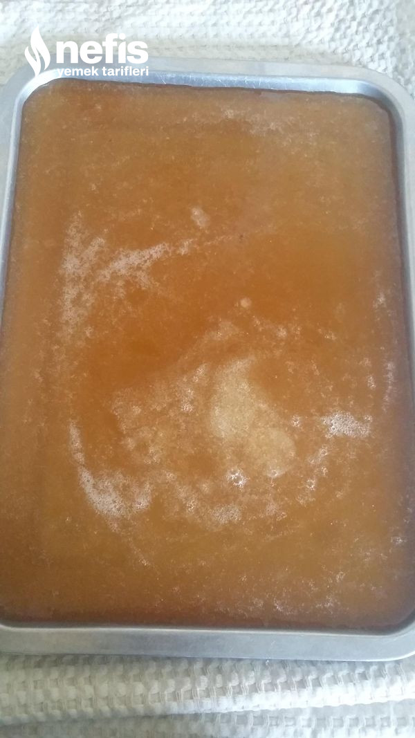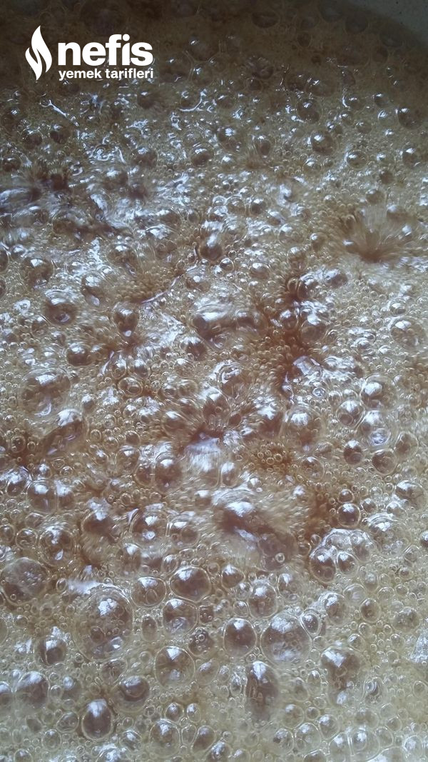 - Tamamən köpük köpük olanadek kaynatın. Yavaşça üzerinde şekerlenme olduğu vakit çabucak tepsiye boşaltın amma çabucak boşaltin ki, sertleşib tencereye yapışmasın.