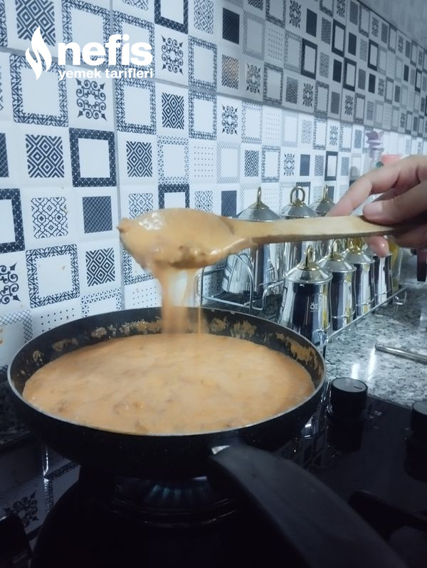 10. Domates de yumuşayıp sos kıvamına gelince en son kremamızı ekleyelim.