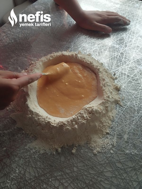 2. Benim meskende hamur açma makinem yoktu, tahta ile yufka açar üzere açtım.