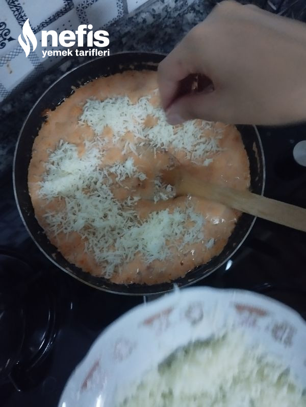 11. Bir iki karıştırdıktan sonra kaşar peynirini de ekleyip sosun altını kapatabiliriz.