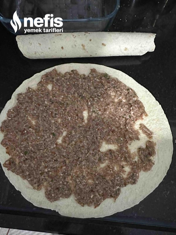 - Tercihen lavaş yada tortillanın üstüne kıyma karışımından yayıp rulo halinde yuvarlayalım.