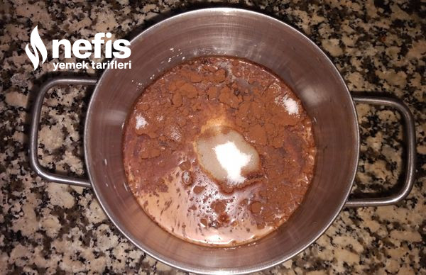 - Bir tencereye sütü, toz şekeri, kakaoyu ve nişastayı alın.