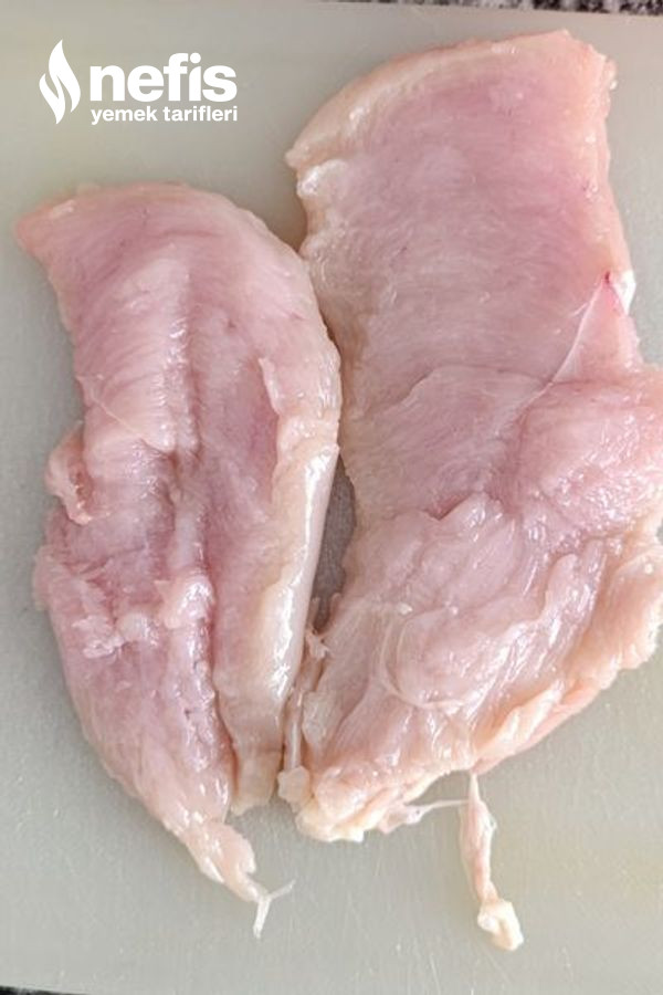 2. Tavuk göğsümüzü ortadan ikiye kesiyoruz.