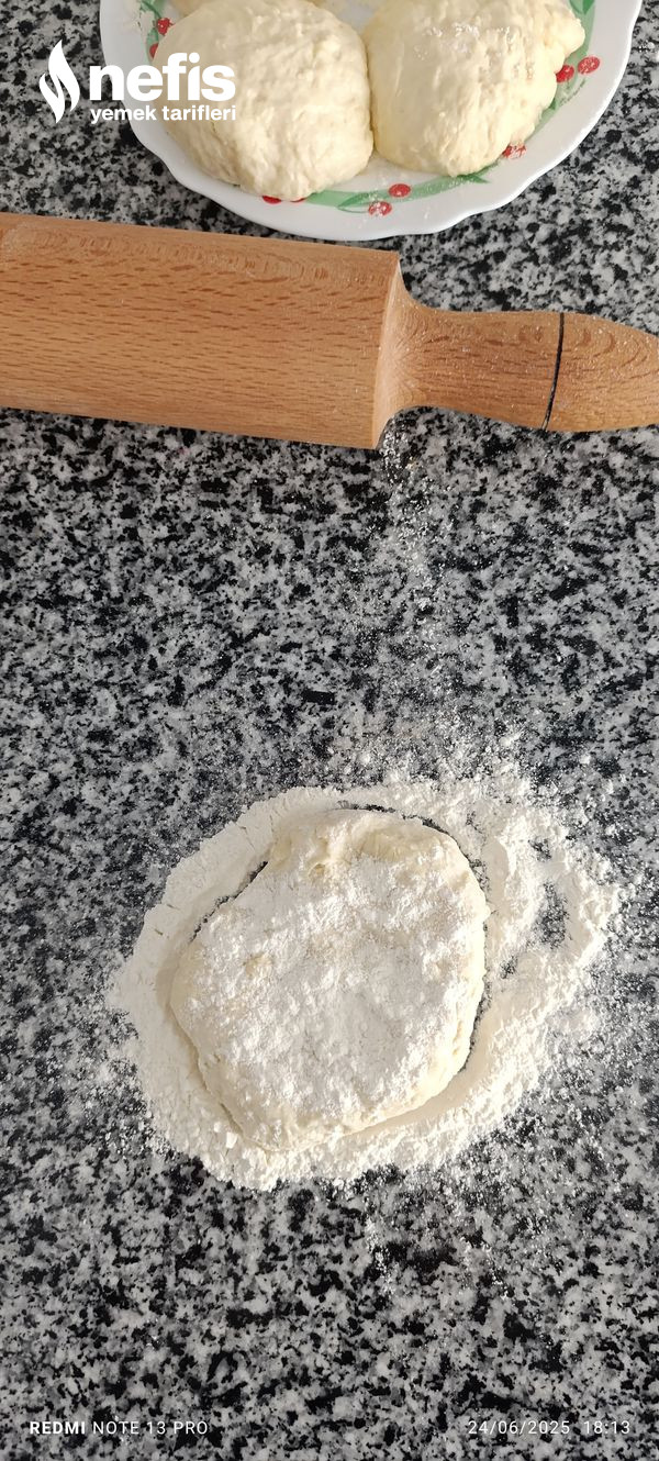 7. Lavaş için yoğurduğumuz hamuru mayası gelene kadar dinlendirdim ben küçük bazlama üzere yaptım.