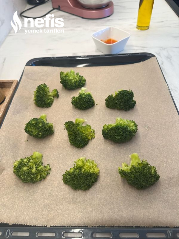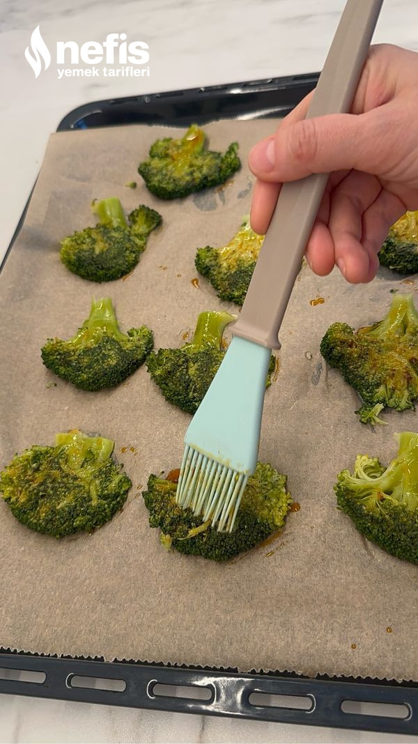 - Zeytinyağ, tuz, karabiber ve kırmızı biberi karıştırıp brokolilerin üzerine bir fırça yardımı ile sürün.