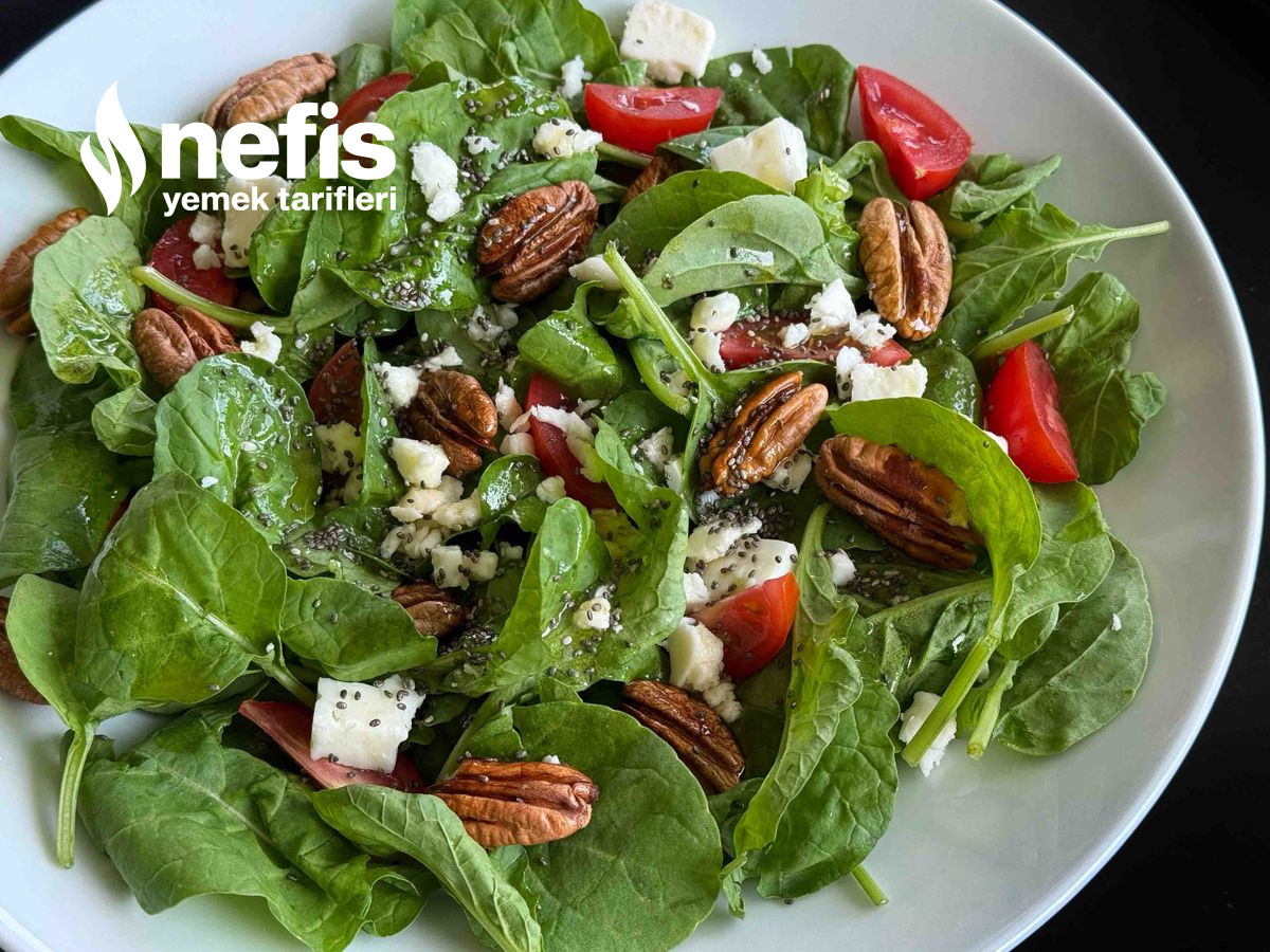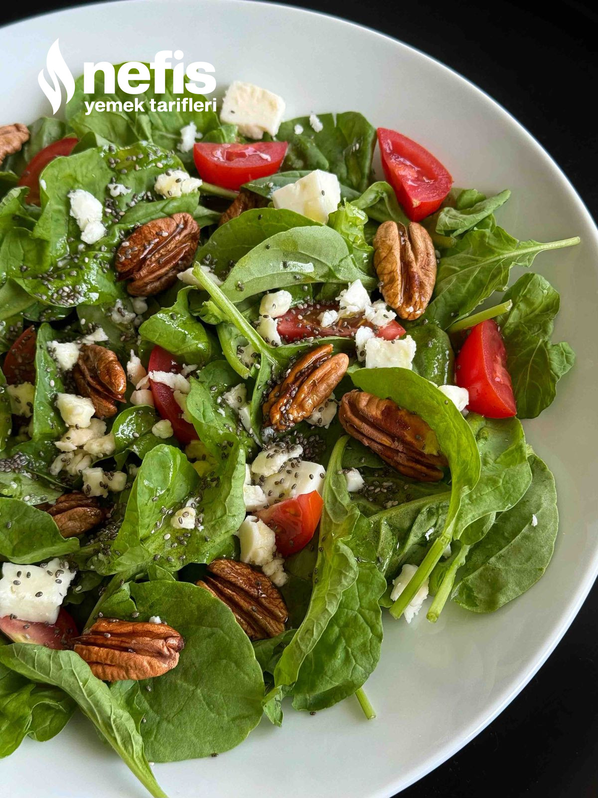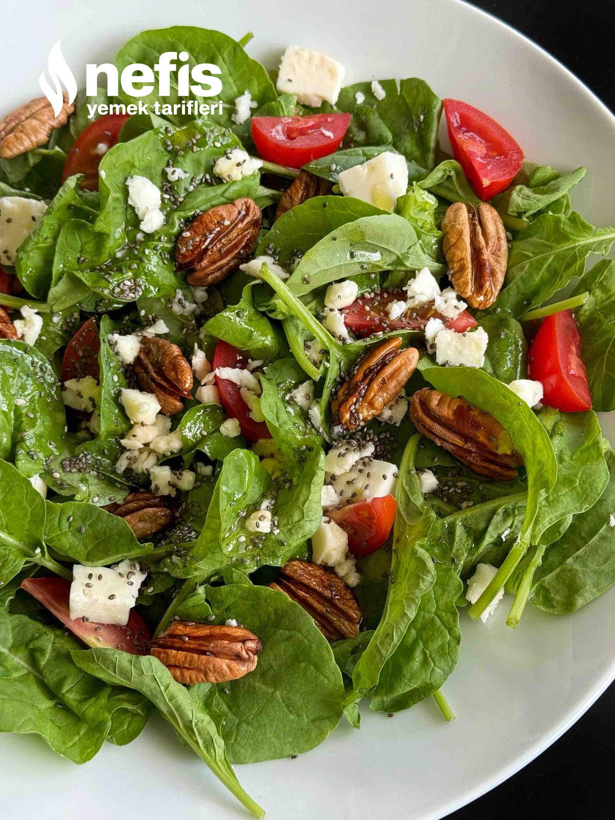 - Kırıp ikiye böldüğümüz pikan cevizlerini de salatamızın üzerine serpiştirelim.