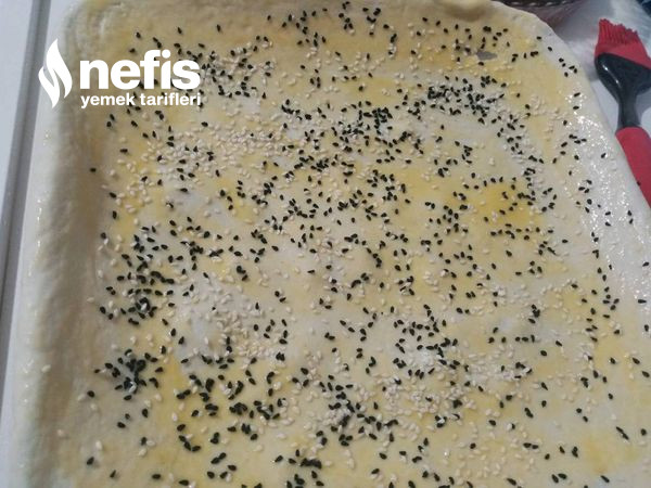 - Hamur için tüm gereçleri yoğurup açıp borcamın üzerine kapatıyoruz bir yumurta sarısı sürüp susam yahut çörek otu serpip üzerindeki ekmek kızarana kadar pişiriyoruz sıcak sıcak servis yapıyoruz.
