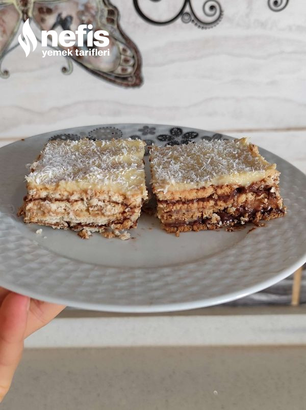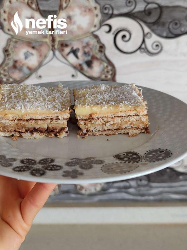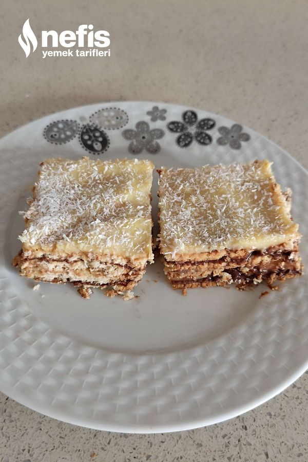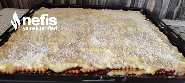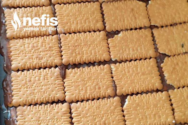 - Bisküvileri teker teker sütun içine bandırıp tepsiye dizin ,bir üzerine çikolatalı pudingi dökün.