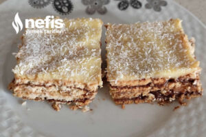 - Bisküvileri teker teker sütun içine bandırıp tepsiye dizin ,bir üzerine çikolatalı pudingi dökün.