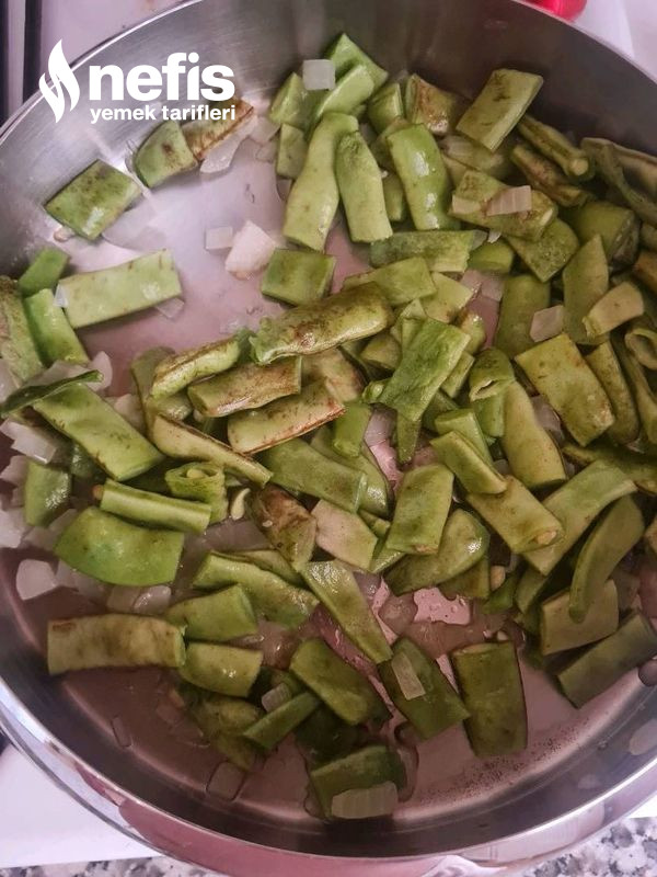 - Bu sırada taze fasulyeyi temizleyelim, doğrayalım.