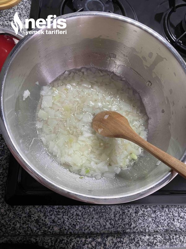 1. Öncelikle kuru soğanı minik minik doğrayıp sıvı yağ ile kavurmaya başlayalım.