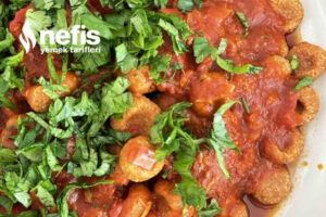 - Haşlanmış köfteleri üzerine sosu dökün. Üzerine ince kıyılmış maydanoz serpip, servis yapın.
