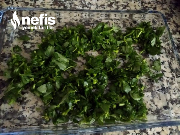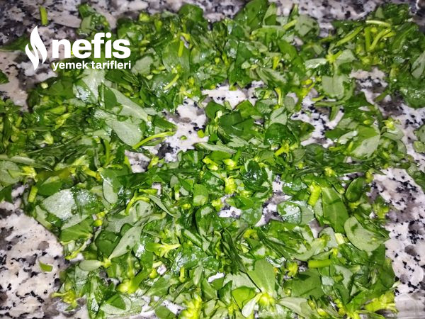 - Önce semizotu küçük küçük doğranır.