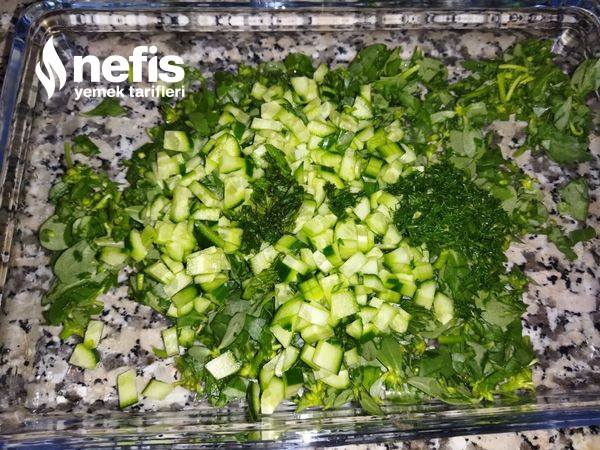 - Taze nane ve taze dereotu doğranır.