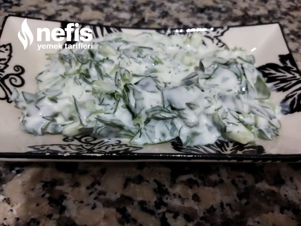- Sonra hepsi salata kasesinde harmanlayıp sarımsak dövülür tuz ile birlikte ve yoğurt ile birleştirip kaseye dökülür.