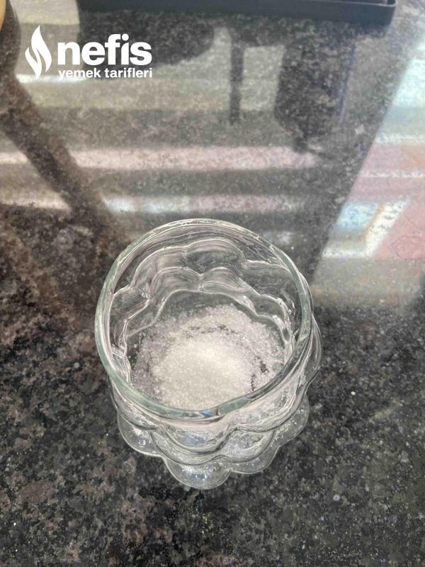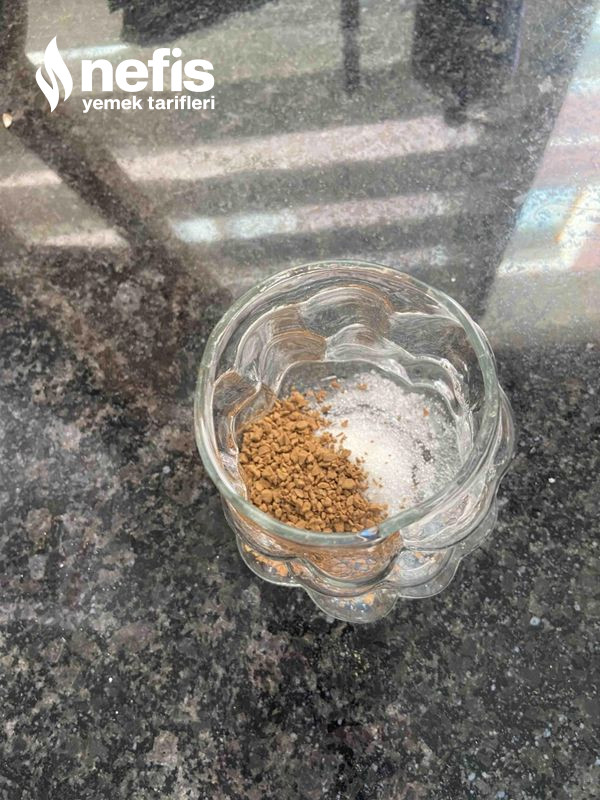 - Kahvemiz için birinci olarak şeker ve granüllü kahvemizi bir bardağa alıyoruz üstüne çok az sıcak su katıyoruz ve çırpıcı ile köpürene kadar çırpıyoruz.