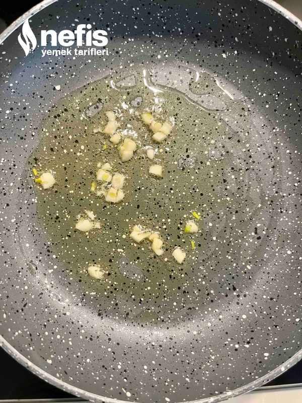 - Isınmış tencereye zeytinyağını ve doğranmış sarımsağı alıp soteleyin.