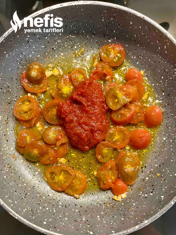 - Salçayı ve kuskusu ek edin.