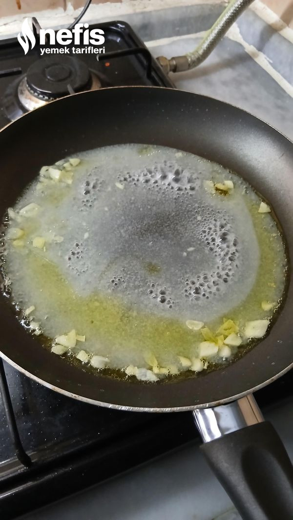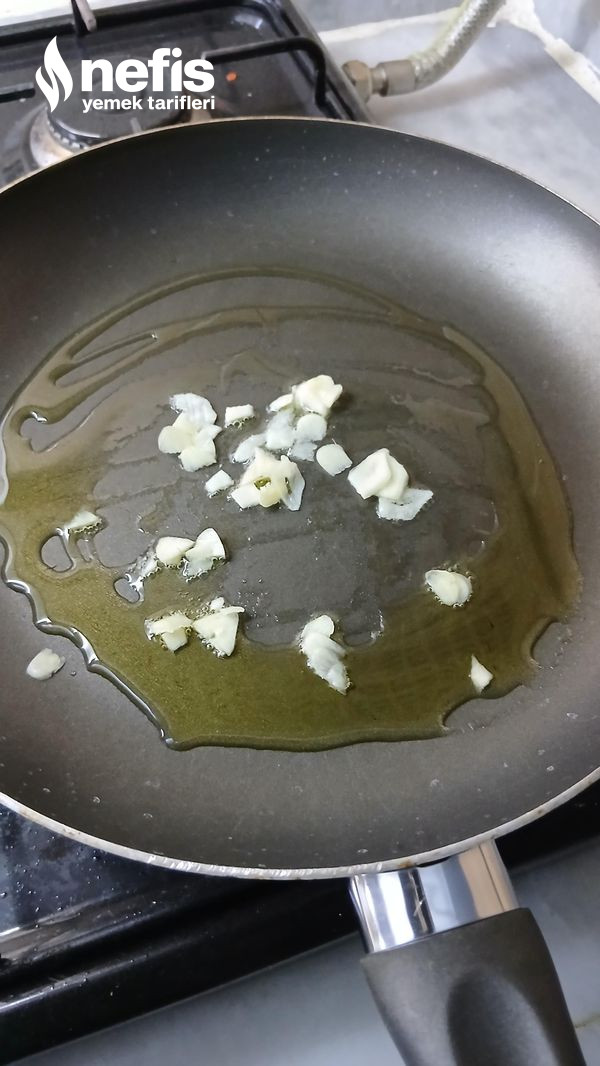 3. Tavaya zeytinyağını alın, sarımsağı yavaşça çevir (karartmadan).