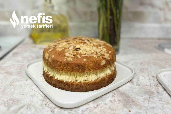 ( ortasına krema yapmadan üstüne pudra şekeri ile sade bademli kek olarak da servis edebilirsiniz 🙏🏻 ).